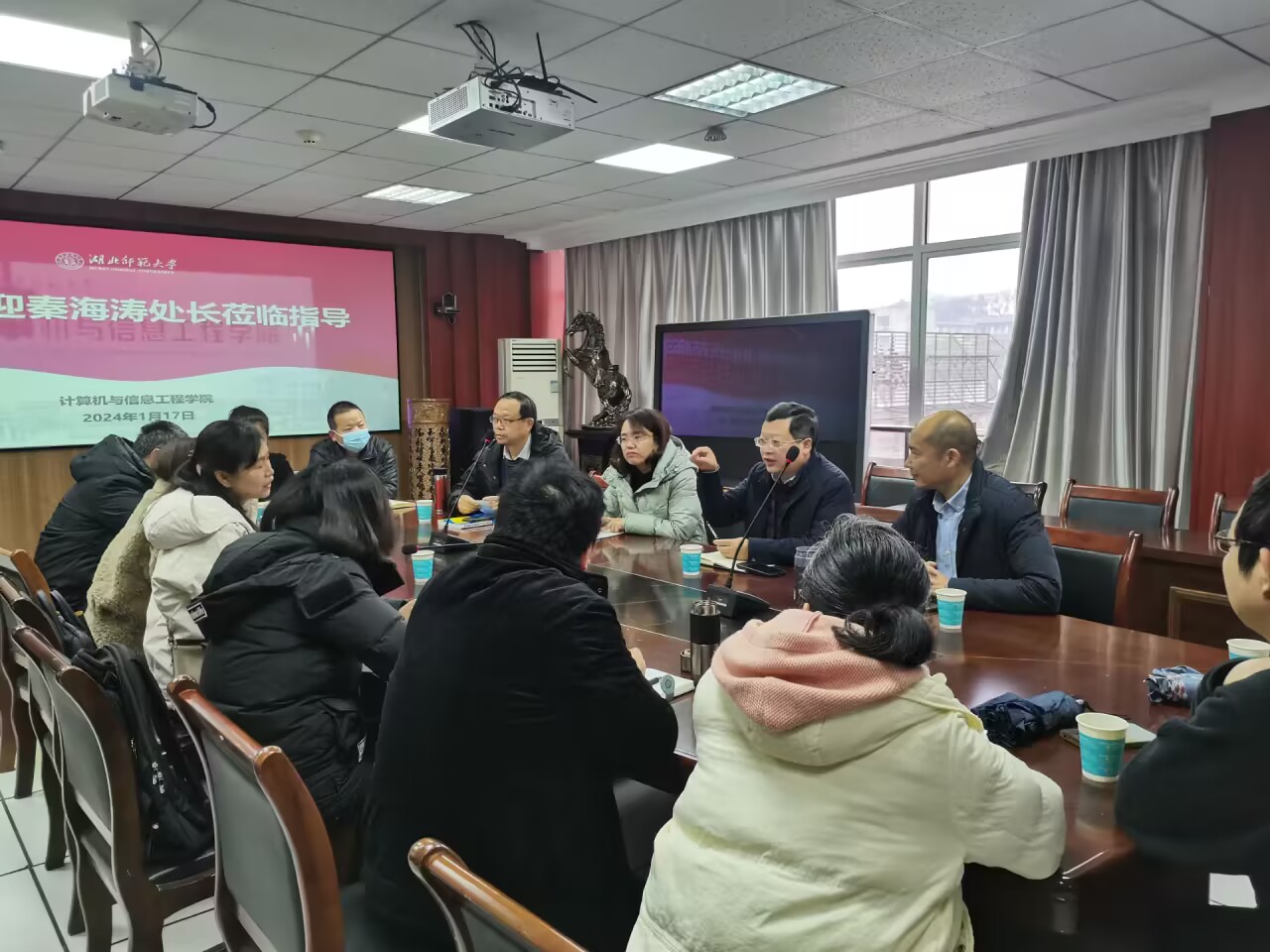 2024年1月17日,计信学院在1715会议室开展教育技术学师范专业认证专家指导答疑会。评估中心主任秦海涛处长应邀指导工作,计信学院王舒怀书记、刘健副书记、童强副院长、陈琦副院长以及全体认证负责人和小组成员参加了会议。