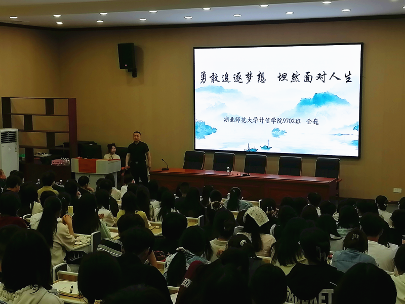 计算机科学与技术专业1997级校友、北京市委军民融合办秘书处(人事处)副处长金巍学长,以“勇敢追逐梦想 坦然面对人生”为题,从黄石求学、长沙逐梦、大漠问天、帝都归隐四个部分,分享了他多姿多彩,敢于追梦的人生历程,勉励同学们踏踏实实做事、清清白白做人、敢于追求自己的梦想。