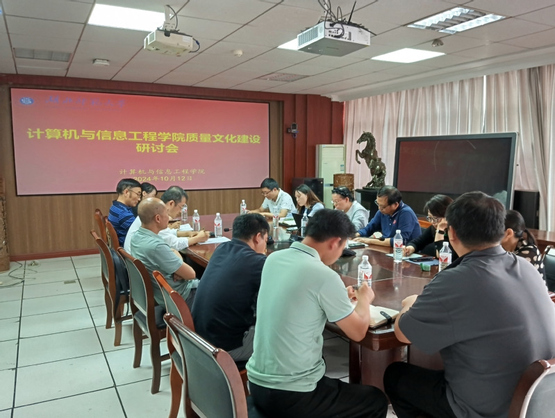 10月12日我院组织老师在1715会议室召开计算机与信息工程学院质量文化建设研讨会。本次活动由教学副院长童强主持,学院领导班子、系主任、部分骨干教师、教学办、学工办工作人员出席本次会议。