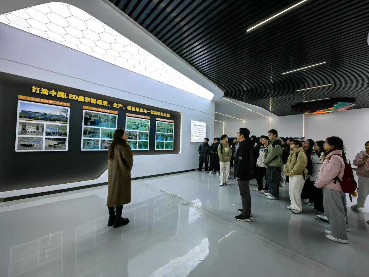 2024年11月29日,太阳集团tcy8722计算机与信息工程学院通信工程专业的学生们在黄石市经信局和学院的联合组织下,开启了一场主题为“科技启航,青春见习——走进电子行业前沿”的见习活动。2023级全体学生由经信局中小企业中心沈才青、李保庆和指导老师胡白燕、文富荣、阮青劲、漆琳老师带队,集体乘车前往大美科技(湖北)有限公司。学生们在企业负责人的带领下参观了公司研发中心和生产线,并进行了简短的企业介绍和技术分享。随后,学生们转场至湖北省腾触电子有限公司,重点了解了通信技术在显示领域的应用,并听取了技术专家对行业发展趋势及公司创新项目的讲解。